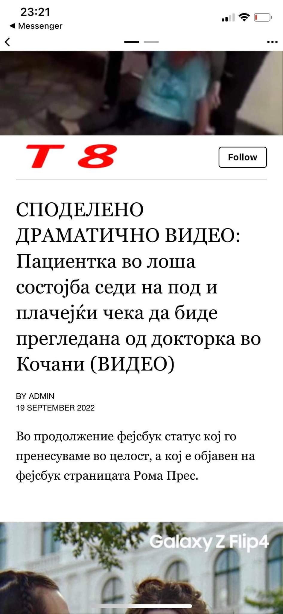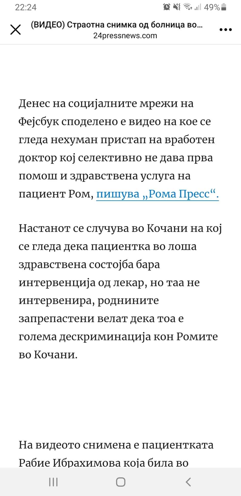 Денес на социјалните мрежи на фб. споделено е видео на кој се гледа нехуман пристап на вработен доктор кој селективно не дава прва помош и здравствена услуга на пациент Ром.